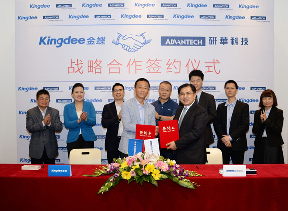 2017年4月13日,金蝶集团与研华科技在深圳正式签订战略合作协议,以“软件+硬件”、“ERP+物联网(IoT)”提供“工业4.0”框架下的“智能生产”与“智能工厂”方案,旨在帮助中国传统制造业在“奔跑中切换跑道”,实现企业从“制造”向“智造”的平滑升级,助力“中国制造2025”。
